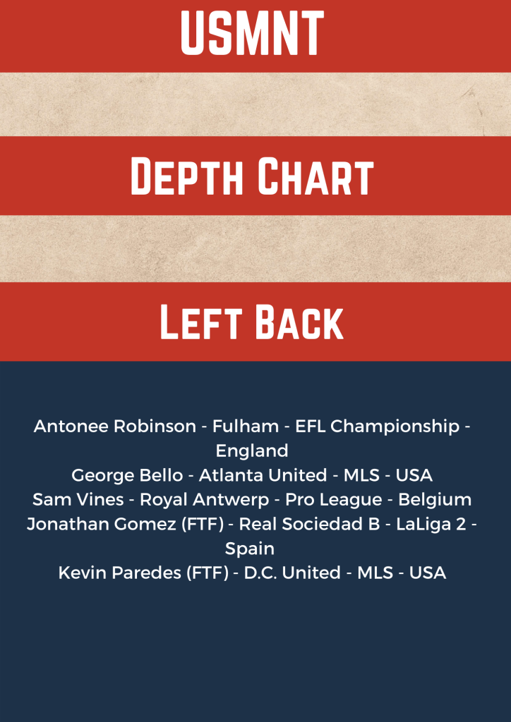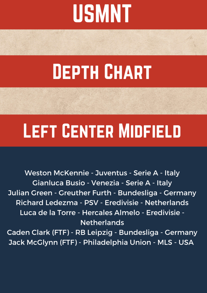 A quick refresh to the USMNT depth chart that now reflects a couple moves that become official January 1. There will be a more in-depth update following the late-January to early-February international break.