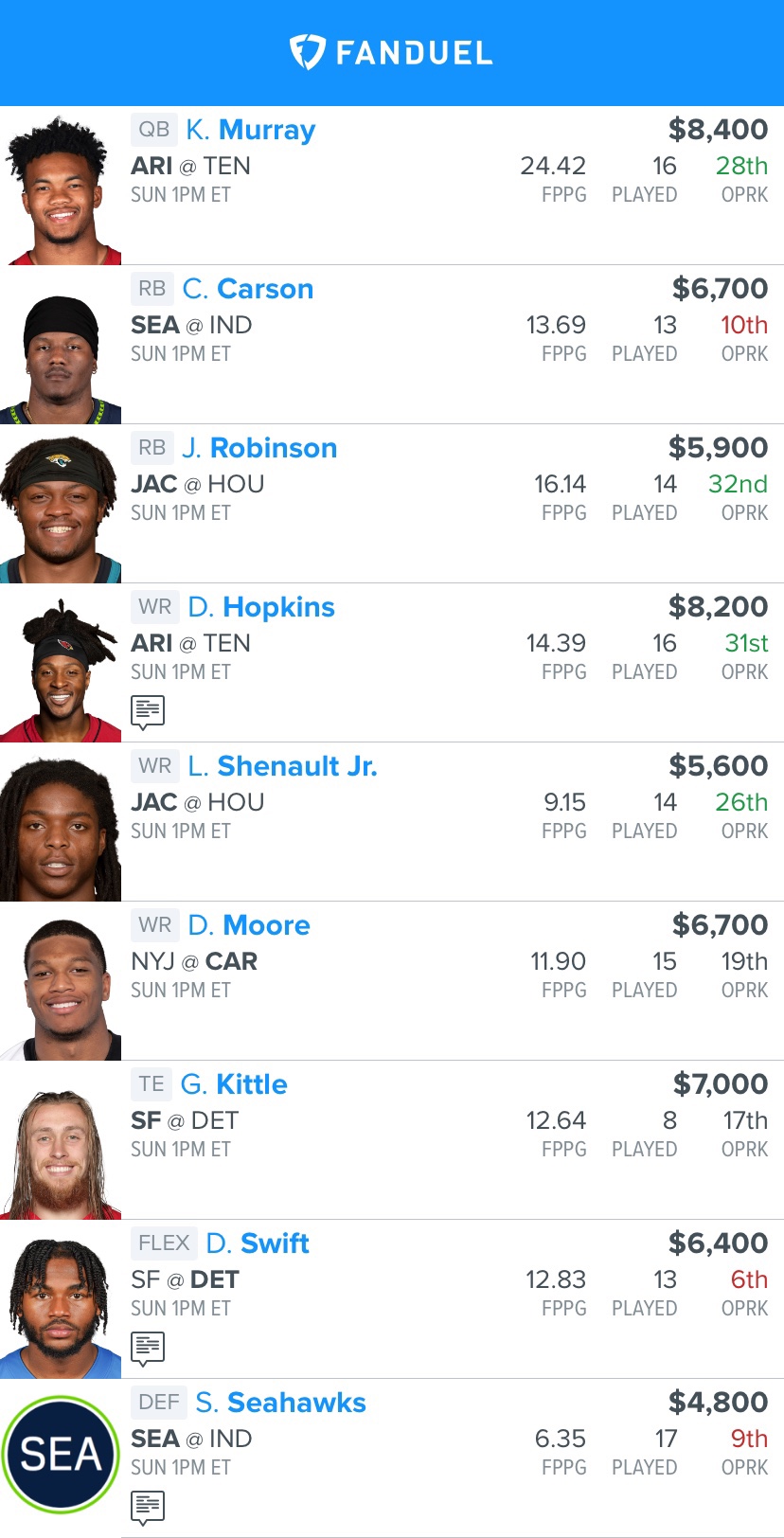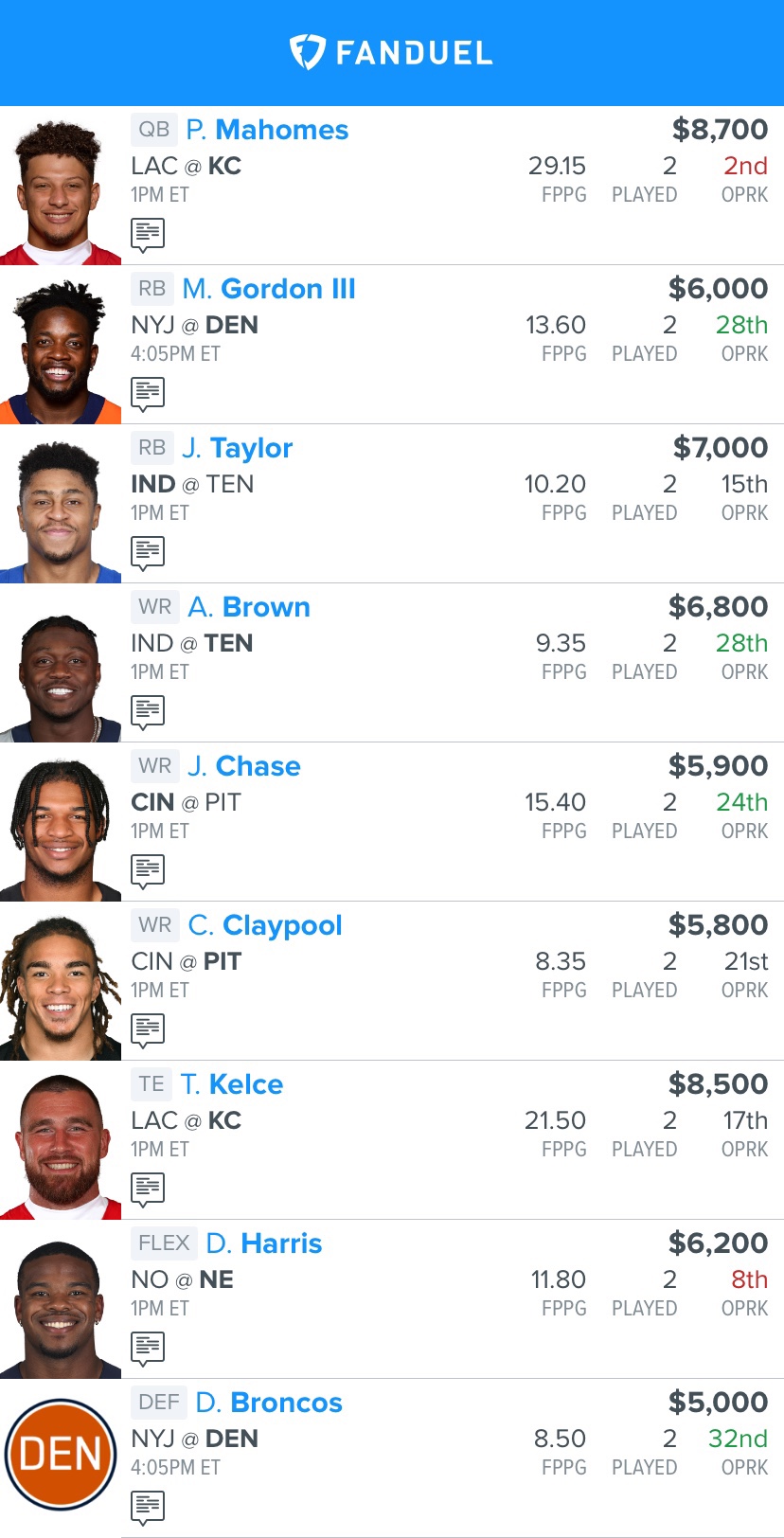 Week 6 Buy-in: 2 units on FanDuel + 2 units on DraftKings