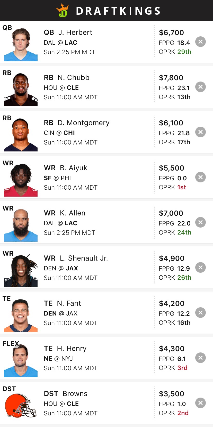 Justin Herbert anchors the DraftKings build in what should be a fast-paced matchup with Miami. Ladd McConkey fits the stack as he finally had a good game last week and hoping he repeats that again this week. Jake Ferguson has been the top tight end in fantasy this year, and should be in line for another big week.