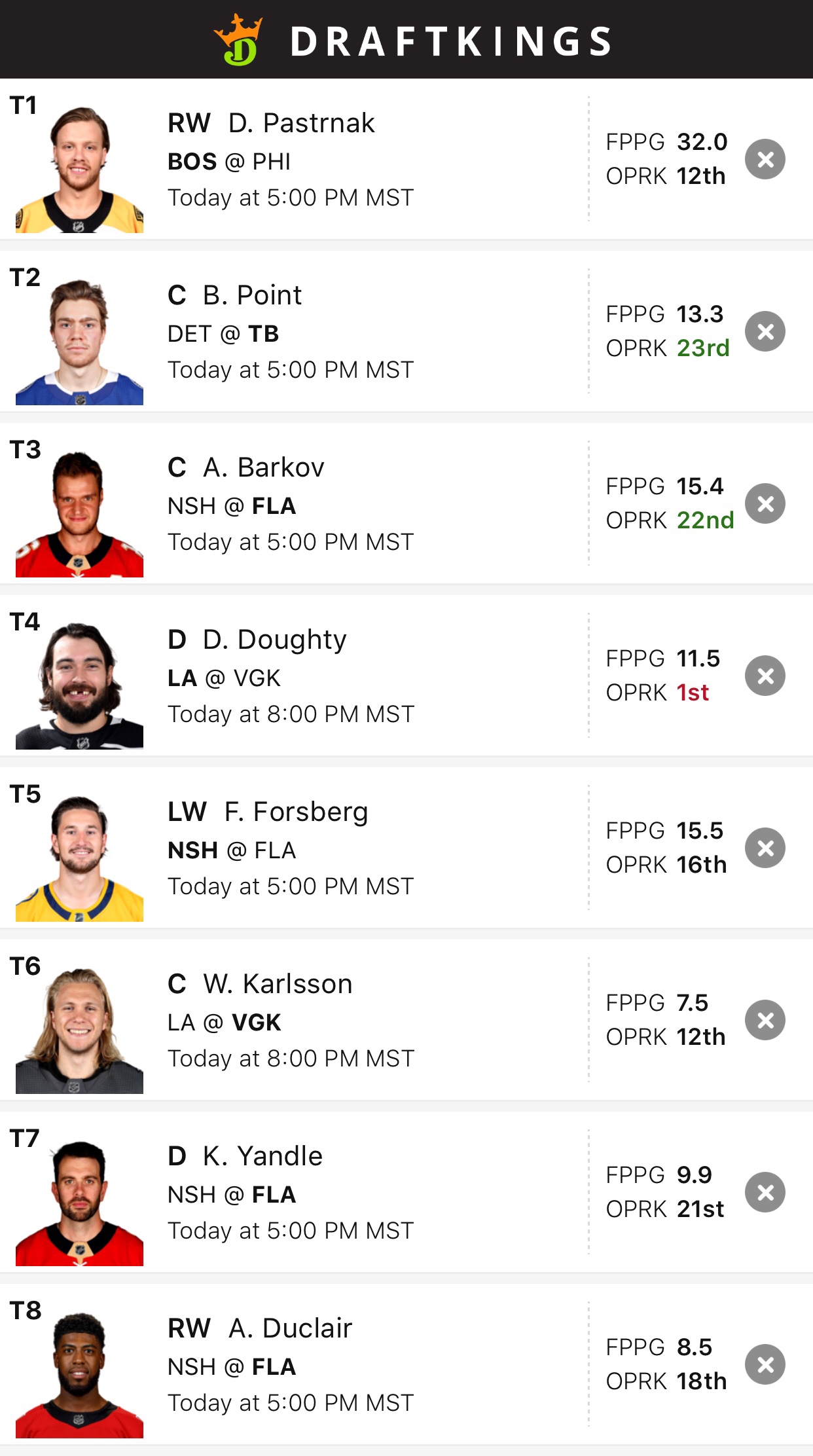 I debated sitting today’s slate out. I hate the matchups but I did well the past couple days and, of course, forgot to post my lineups here.