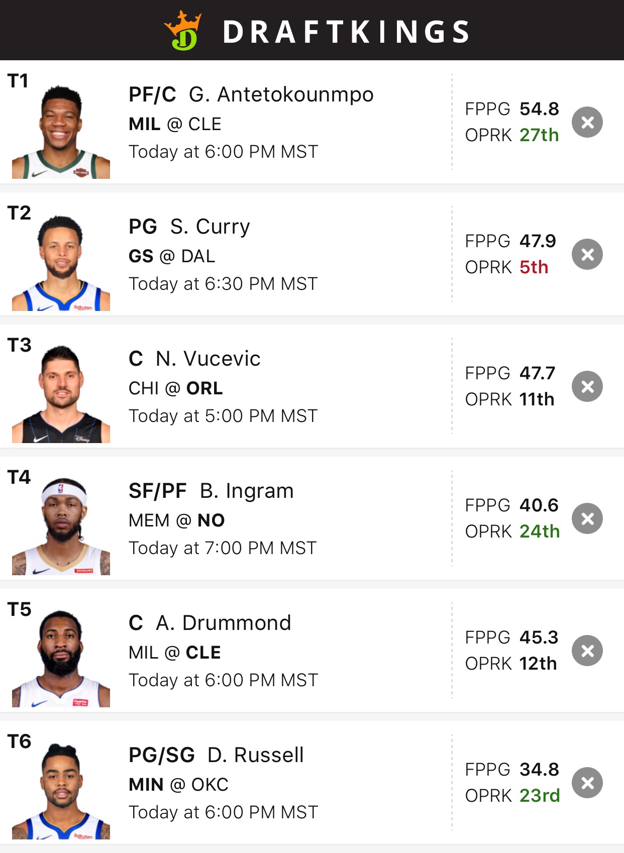 NBA evening Slate Tiers