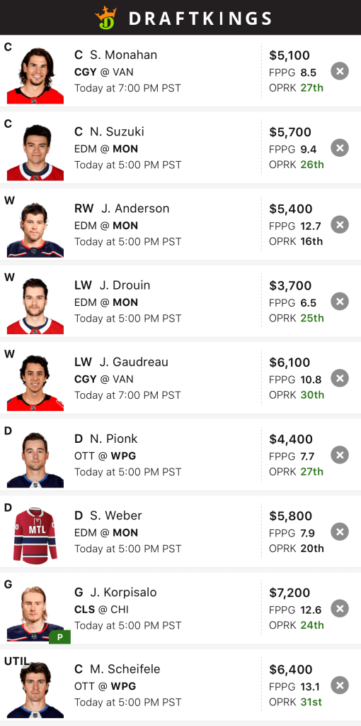 Anyway, the two most exploitable matchups appear to be the Canadiens against a leaky Oilers defense, and the Jets against a Senators team that wouldn’t cut it in most rec leagues. Enjoy.